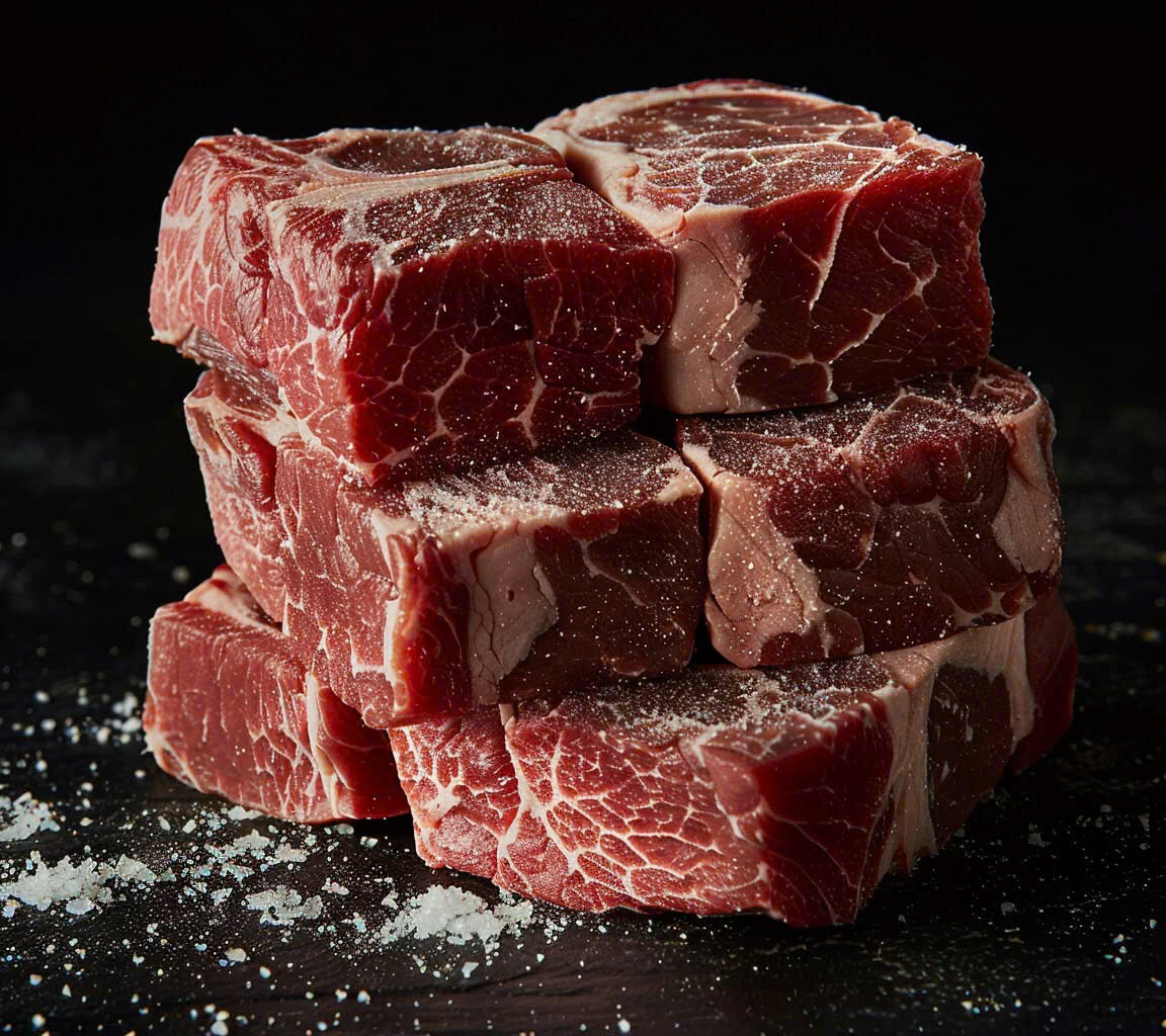 Một trong những điểm nổi bật của thịt bò Black Angus là tỷ lệ mỡ xen kẽ cao, tạo ra kết cấu mềm mại và hương vị béo ngậy đặc trưng. Sự phân bố mỡ đều đặn giúp thịt không bị khô khi chế biến, đồng thời mang lại độ ngọt tự nhiên. Mỡ trong thịt bò Black Angus có màu trắng sáng, giúp tăng thêm sự hấp dẫn cho món ăn.